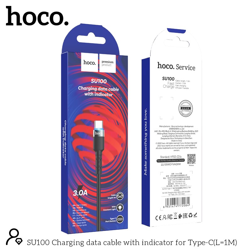 Thông số kĩ thuật sản phẩm Cáp sạc nhanh có đèn báo Hoco SU100 Type C