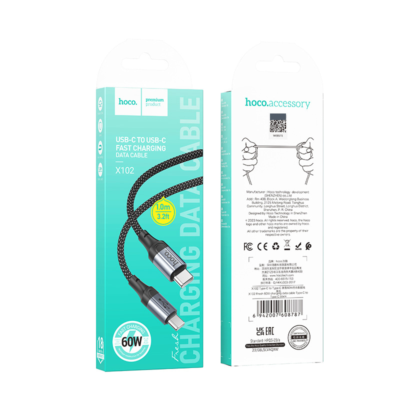 Thông số kĩ thuật sản phẩm Cáp sạc nhanh Hoco X102 Type C to Type C 60W
